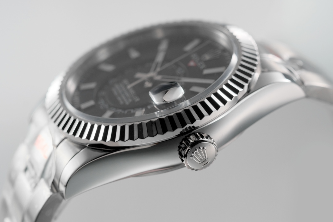 Fabulous Top Tier Fake Rolex Sky Dweller super clone in vibrant Black sunburst dial.? Buy this best Sky Dweller 1:1 clone. The case & strap made in 904L oyster steel suggests high quality Super Copy Rolex sky dweller features calendar display above each hour marker & rotating GMT at center of this best replica Sky Dweller.